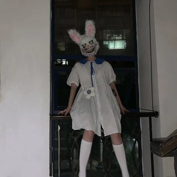 Limited Price of New Bunny Mask Prank Evil Bloody Rabbit Scary Mascara PVC Plush Toy Horror Killer Anonymous White M
