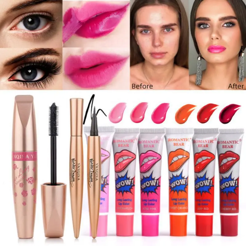 Best Chance of Makeup Set Waterproof Peel-off Lip Gloss Mascara Liquid Eyeliner Long Lasting Smudge-proof Cosmetic