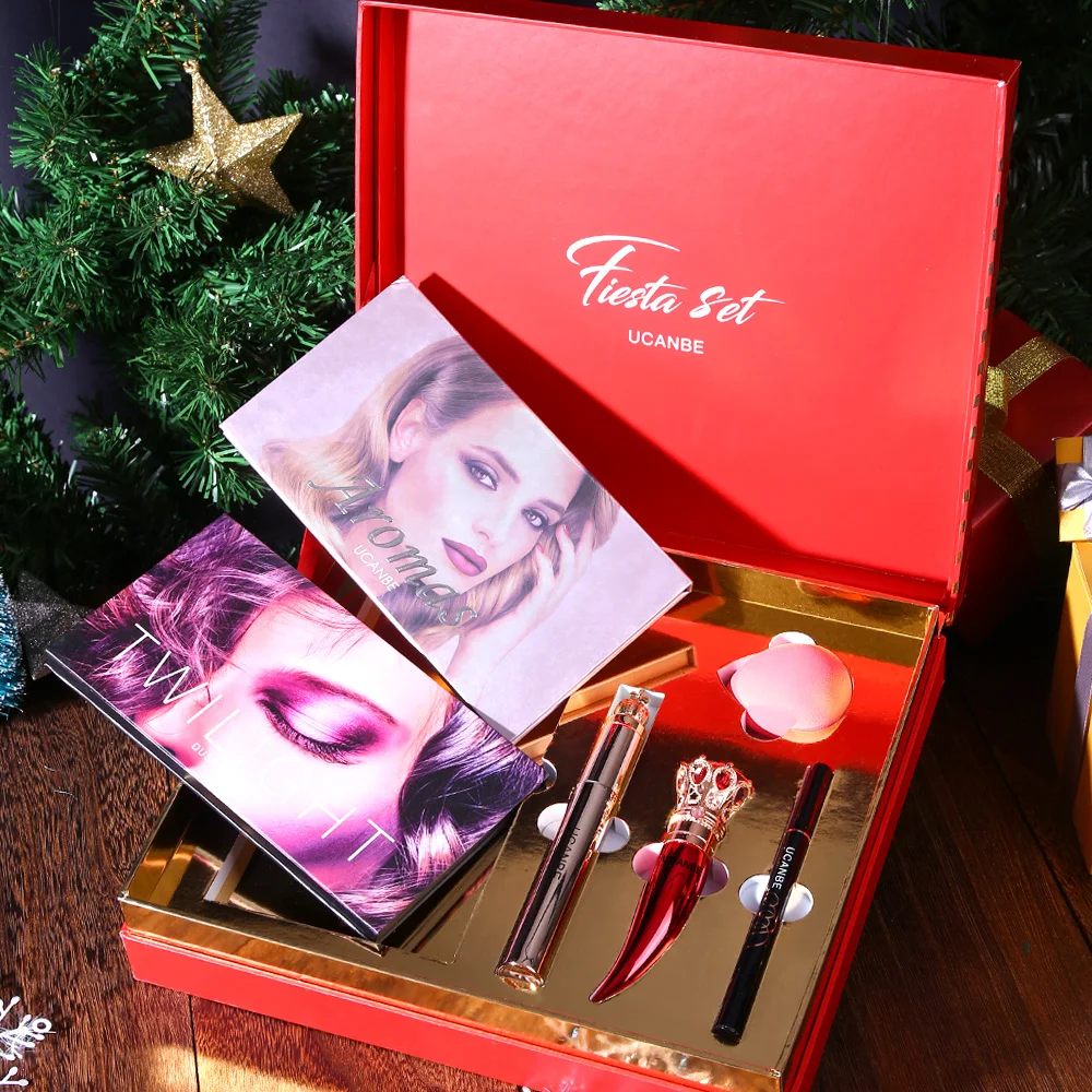 .image for UCANBE Elegant 6pcs/lot Festival Gift Box Makeup Set Big Size 2 Eyeshadow Palette 1 Lipstick 1 Masc